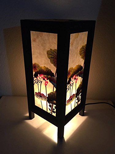 Thai Vintage Handmade Asian Oriental Lotus flower Bedside Table Light or Floor Wood Paper Lamp Shades Home Bedroom Garden Decor Modern Design from Thailand by Thai decorated